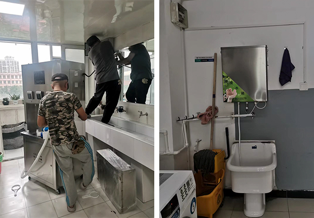 國(guó)林校園刷卡開(kāi)水器可掃碼刷卡取水,智能收費(fèi)。采用全自動(dòng)數(shù)控裝置,廢水回收再利用,將管線引至洗手池,可用于洗手洗衣物洗拖把,做到不浪費(fèi)一滴水,既環(huán)保又節(jié)能。