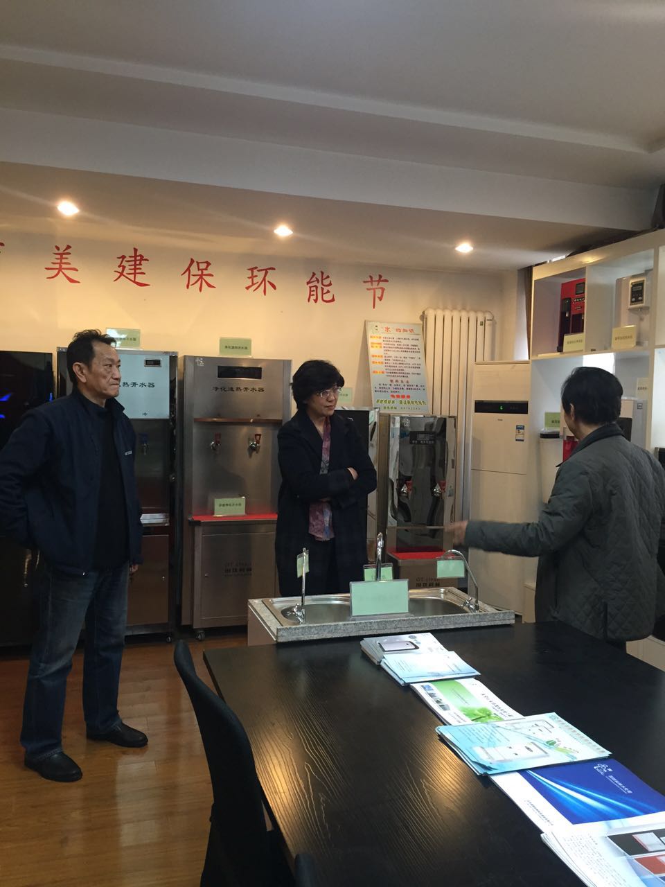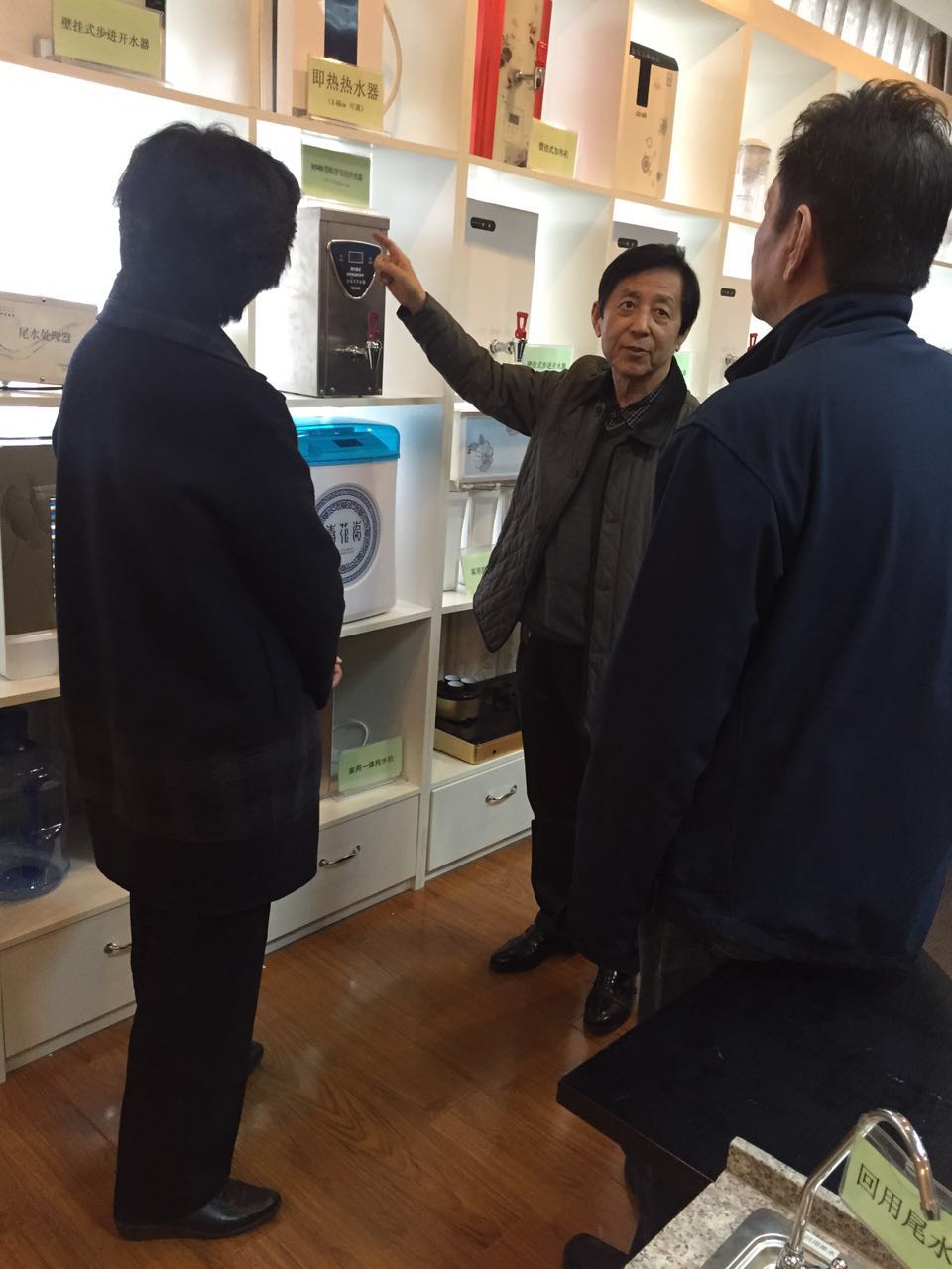 我司董事長向各位領(lǐng)導(dǎo)介紹凈水器尾水回收技術(shù)