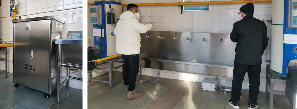 首先,定制安裝了一臺(tái)凈水設(shè)備,自來(lái)水先經(jīng)過(guò)我們的凈水設(shè)備過(guò)濾,再進(jìn)鍋爐燒開(kāi),這樣不會(huì)產(chǎn)生水垢,凈水設(shè)備還過(guò)濾掉了對(duì)人身體有害的物質(zhì)(重金屬、余氯、漂白粉、農(nóng)藥殘留、細(xì)菌、病毒等),有效去除異味,抑制細(xì)菌滋生,提升口感,讓水更好喝。然后,鍋爐還連接著定制的8龍頭飲水臺(tái)。8龍頭飲水臺(tái)更加方便環(huán)衛(wèi)工人喝水,接水不用排隊(duì)等待。