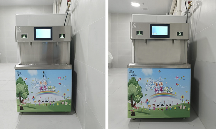 幼兒園直飲機(jī)雙溫出水,圓弧無尖角保護(hù)幼兒稚嫩皮膚,可卡通面板讓幼兒愛上喝水。教師機(jī)搭配刷卡機(jī),刷卡取熱水。